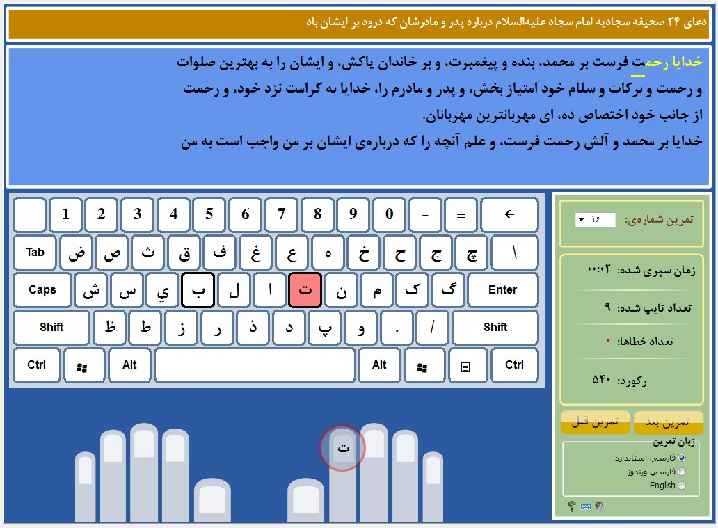 - تمرین تایپ ده انگشتی زبان فارسی